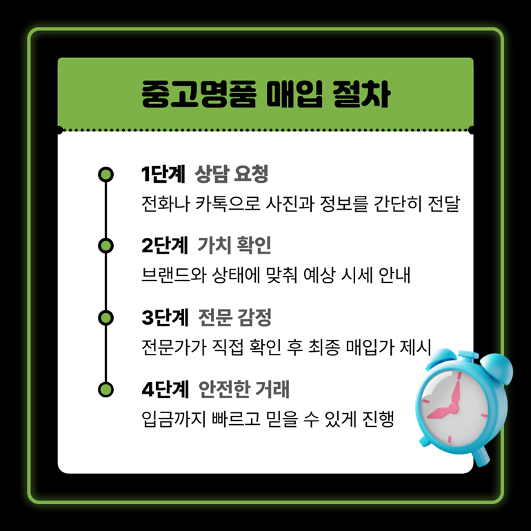 안산중고명품매입 시 즉시매입과 위탁매입 중 선택할 수 있습니다. 즉시매입은 바로 현금을 받을 수 있어 급전이 필요한 경우 유리합니다. 위탁매입은 판매 기간은 길어질 수 있지만 더 높은 가격에 판매할 가능성이 있습니다. 소비자의 상황과 선호도에 따라 두 방식 중 선택할 수 있으며 안산중고명품매입 업체들은 두 가지 옵션을 모두 제공하는 경우가 많습니다.