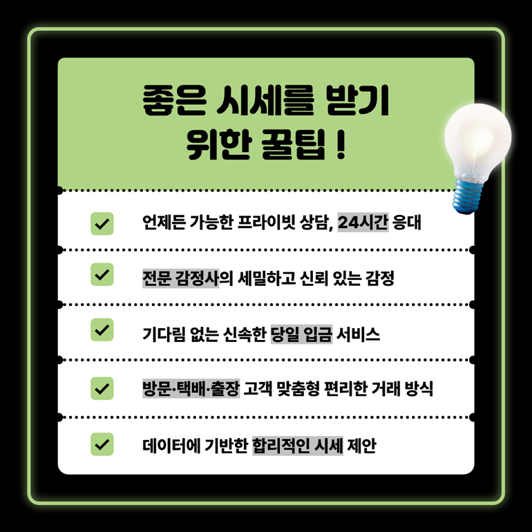 전문 딜러는 정품 감정 능력과 시세 파악 능력이 뛰어나 합리적인 가격에 거래를 성사시킬 수 있습니다. 또한 개인 간 거래에서 발생할 수 있는 분쟁의 위험도 줄일 수 있어 안심하고 거래할 수 있어요.