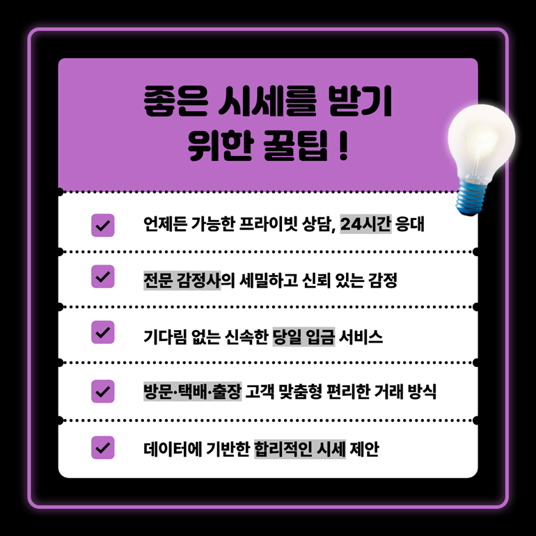 A: 감정서가 없어도 매입은 가능합니다. 하지만 감정서가 있으면 더 정확한 가치 평가와 높은 매입가를 받을 수 있습니다.