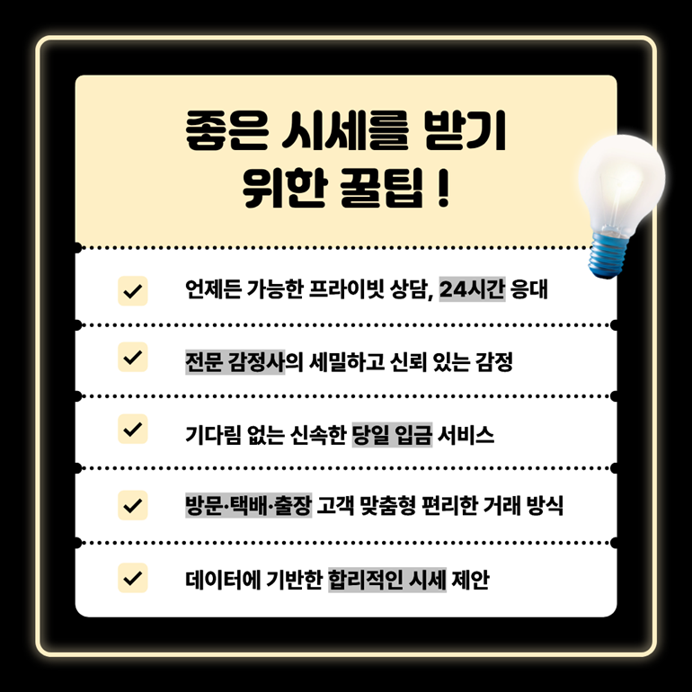중고명품을 판매할 때 개인 간 거래와 전문 딜러를 통한 거래 중 고민하는 경우가 많습니다. 개인 거래는 수수료가 없어 더 높은 가격을 받을 수 있다는 장점이 있지만 사기 위험이 있고 가격 협상에 대한 부담이 큽니다. 반면 군포중고명품매입 전문 딜러를 이용하면 안전하고 신속한 거래가 가능하며 정확한 감정을 통해 적정한 가격을 받을 수 있어요. 또한 여러 딜러의 견적을 비교할 수 있어 더 유리한 조건으로 거래할 수 있습니다.
