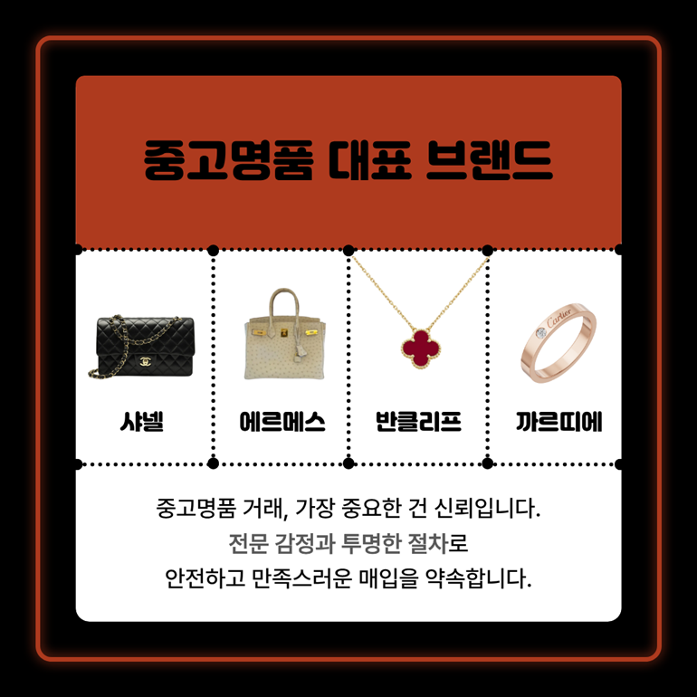 에르메스는 최고급 브랜드로 인식되며 특히 버킨백과 켈리백의 가치가 높게 평가됩니다. 구성품의 유무가 가격에 큰 영향을 미치는 브랜드이기도 해요. 주얼리 라인에서는 클릭 앵크르와 케이디 팔찌가 인기 있습니다.