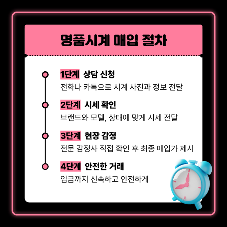 검수와 감정은 카카오톡이나 문자를 통한 원격 상담, 매장 방문, 출장 서비스, 택배 등 다양한 방식으로 이루어질 수 있어요. 이 과정에서 시계의 진위 여부, 정확한 상태, 시장 가치 등을 전문가가 꼼꼼히 확인합니다. 최종 견적이 확정되면 판매자의 동의 하에 매입이 이루어지고 대금이 지급됩니다.