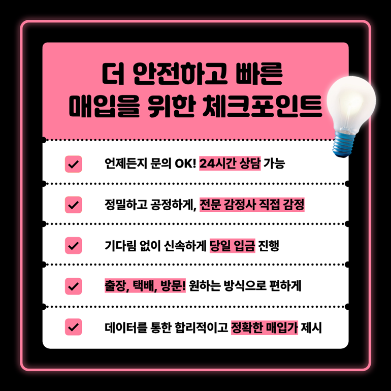 A: 즉시매입의 경우 당일 현금 지급이나 계좌이체로 빠르게 정산됩니다.