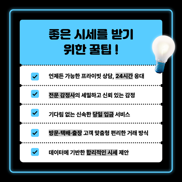 A: 온라인 견적은 초기 참고 사항일 뿐이며 정확한 가격은 실물 감정 후 결정됩니다. 전문가의 직접 감정이 가장 신뢰할 수 있는 방법입니다.