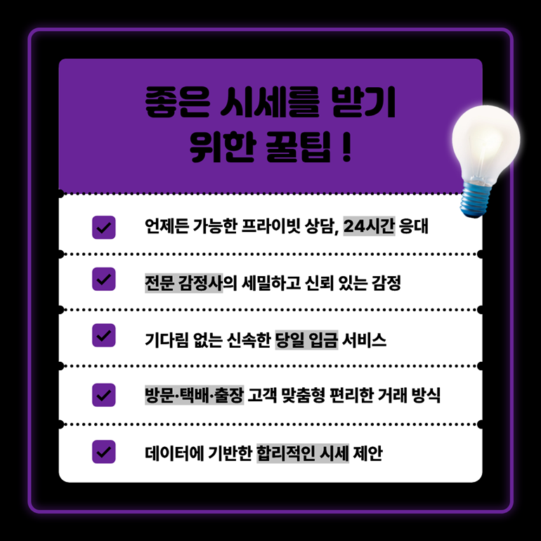A: 신뢰도 높은 업체를 선택하는 것이 중요합니다. 오랜 경력과 전문성을 갖춘 업체를 찾고 여러 곳의 견적을 비교해보는 것이 좋아요. 또한 정품 감정 서비스를 제공하는지 확인하는 것도 중요합니다.