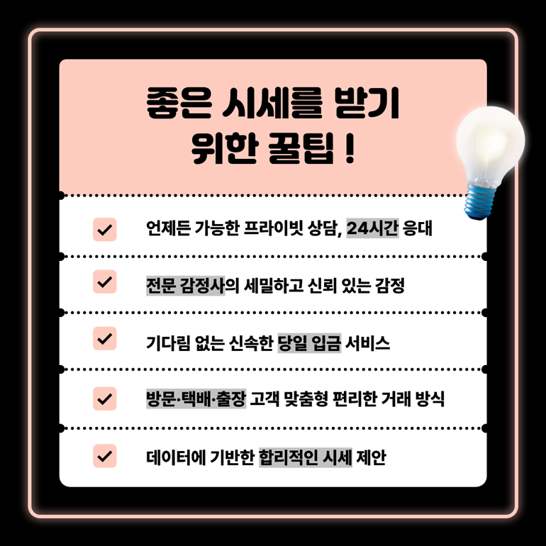 중고명품을 거래할 때 개인 간 거래와 전문 딜러를 통한 거래 중 선택할 수 있습니다. 개인 거래의 경우 중간 수수료를 줄일 수 있다는 장점이 있지만 사기 위험이 있고 가격 협상에 대한 부담이 큽니다. 반면 명동중고명품매입 전문 딜러를 이용하면 안전하고 신뢰할 수 있는 거래가 가능합니다. 전문가의 정확한 감정을 통해 공정한 가격을 받을 수 있으며 복잡한 절차 없이 빠르게 거래를 마무리할 수 있어 편리합니다.